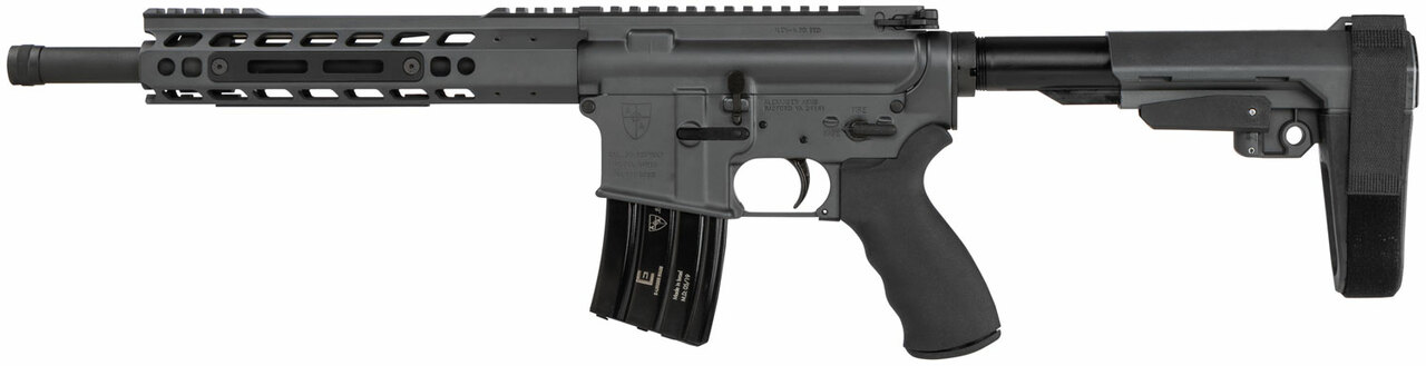 This model of the Highlander pistol is chambered in .50 Beowulf, and features a Sniper Grey finish. It features a 12″ barrel with a phosphate finish and thread protector muzzle. It has a 7+1 capacity, Manticore Arms Transformer handguard, and SB Tactical SBA3 stock.Brand ALEXANDER ARMS LLC