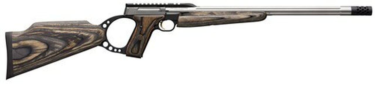 Based on the popular and proven Buck Mark Pistol, the Browning Buck Mark Rifle is one of the most unique rimfires. These rifles offer everything you need- dialed in ergonomics, fast handling and modern styling. Plus, the Buck Mark Rifles provide outstanding accuracy, dependable blowback operation, a crisp single-action trigger pull and magazines that are interchangeable throughout the Buck Mark line. Target models feature a steel bull barrel. The chambers in every Buck Mark Rifle barrel are hand-reamed and muzzle crowns are recessed to protect them from damage that could degrade accuracy. The Buck Mark Target Stainless Muzzle Brake Rifle features a stainless steel fluted barrel and slide for dynamic two-tone look, laminated stock, grips and forearm. Muzzle brake and thread protector suppliedAction : Semi-AutomaticCaliber : 22 LRBarrel Length : 18.5″Capacity : 10+1Trigger : Gold PlatedSafety : ManualOAL : 34″Weight : 5.6 lbsStock Description : Laminate GrayMetal Finish : Stainless Steel
