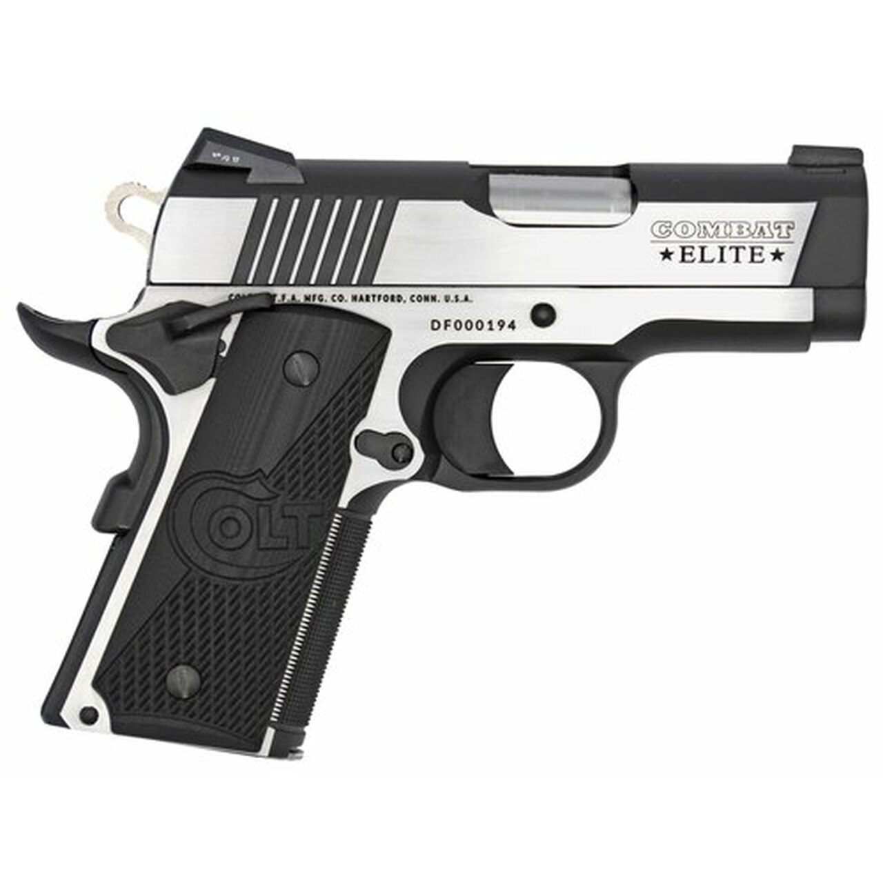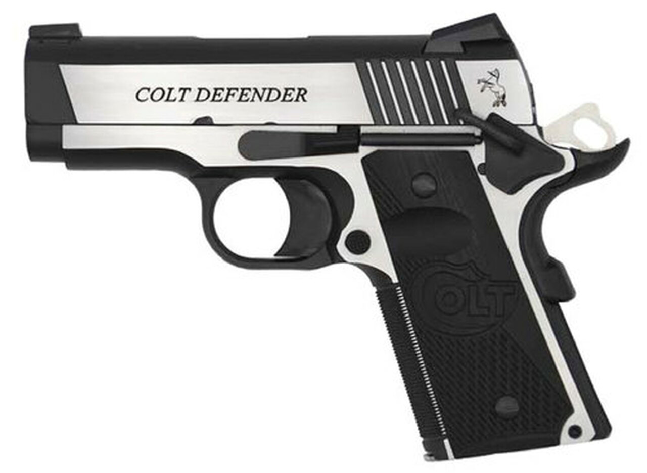Colt’s Manufacturing, Combat Elite Defender, Semi-automatic, 1911, Compact, 9MM, 3″ Barrel, Stainless Steel Frame, Two-Tone Finish, G10 Grips, 8 Rd, 1 Magazine, Right Hand, Upswept Beavertail Grip Safety, Ambidextrous Thumb Safety, Novak Night Sights