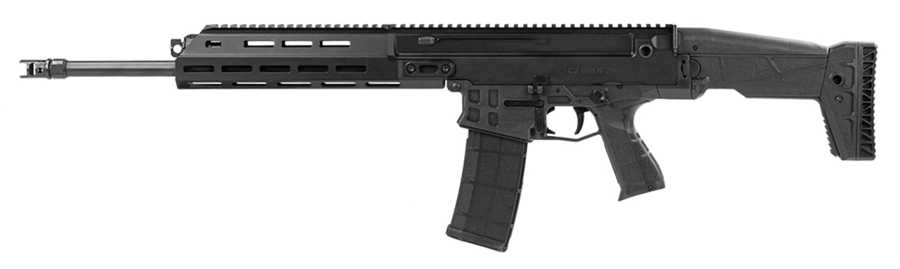 Based on the select-fire Bren 2, this handy rifle operates via a short-stroke gas piston system with a return spring contained within the action itself. Without the need for a buffer tube, it features a folding, adjustable stock. At 35.6 inches long, folding that stock brings its length down to just 28 inches — making it much easier to transport or store.