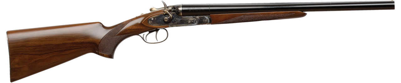 Following in the tradition of the guns used by the stagecoach guards of the 1880s, the cowboy gun features double triggers, 19th century color case hardening and fully functional external hammers and Turkish walnut pistol grip stock.Category : ShotgunsAction : Side by SideGauge : 12 GaugeBarrel Length : 20.0″Capacity : 2Chamber : 3″OAL : 37″Weight : 6.7 lbsChoke Configuration : N/AReceiver Description : Case HardenedStock Description : Turkish Walnut