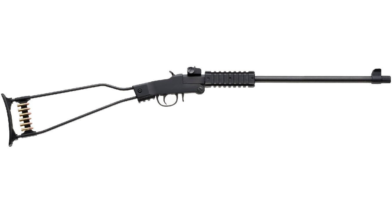 Little Badger 22LR Rimfire Rifle With Black Underfolding Stock — An ultra-compact, single-shot rifle built on a durable aluminum chassis. Features a 16.5″ threaded barrel and Picatinny rail. Ships from Charlotte, NC.
