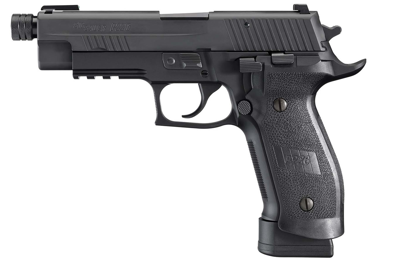Compatibility Standard P226 holsters (full-size), P226 magazines, 13/16″-24 threaded accessories
