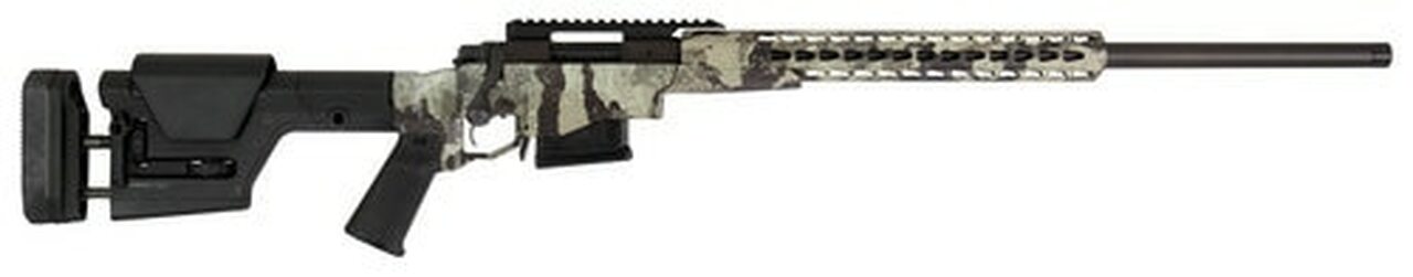 The Model 700 PCR (Precision Chassis Rifle) pairs the strongest action ever conceived. It has an aircraft grade aluminum alloy chassis of unmatched rigidity and atmospheric immunity to create the most stable and consistent platform possible for launching long, distance shots. It’s a potent combination made even more effective with a host of accurizing upgrades that include a 24″ barrel with 5R rifling, free-floated in an aluminum handguard, plus a completely user-configurable Magpul PRS Gen 3 stock for the ultimate in comfort from any shooting position.This 6.5 Creedmoor model features a Veil Cervidae camo metal finish, threaded muzzle with protector, X-Mark Pro trigger, picatinny rail, and a 5-round Magpul detachable magazine.Category : Rifles CenterfireAction : BoltCaliber : 6.5 CreedmoorBarrel Length : 24″Capacity : 5+1Trigger : X-Mark ProSafety : ManualOAL : 44″Weight : 10.5 lbsStock Description : Magpul PRS/Aluminum Chassis BlackMetal Finish : Veil Cervidae Camouflage