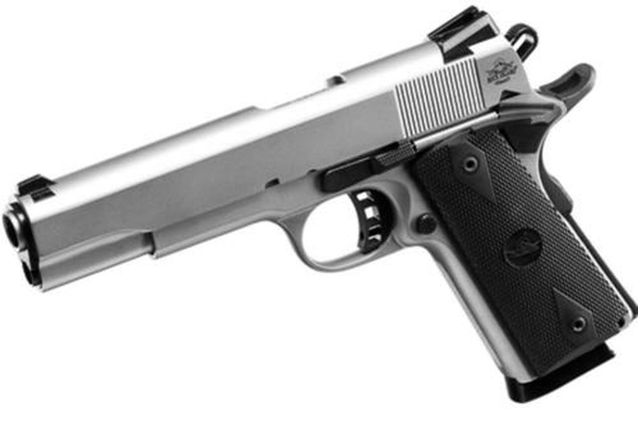 Combat-style, low-profile dovetail front and rear sights. Full length guide rod. Ambidextrous safety, extended beavertail, skeletonized trigger and a serrated slide.Barrel Length : 5Hand Gun Web Model : Rock Island ArmoryCaliber : .45 ACPTactica : TacticalGrips : Black CheckeredCapacity : 8Finish : Matte NickelBarrel Length Range : 5″<6"Item Description : API RIA 1911A1 45 TAC 5 NP 8Caliber-Gauge : .45 ACP