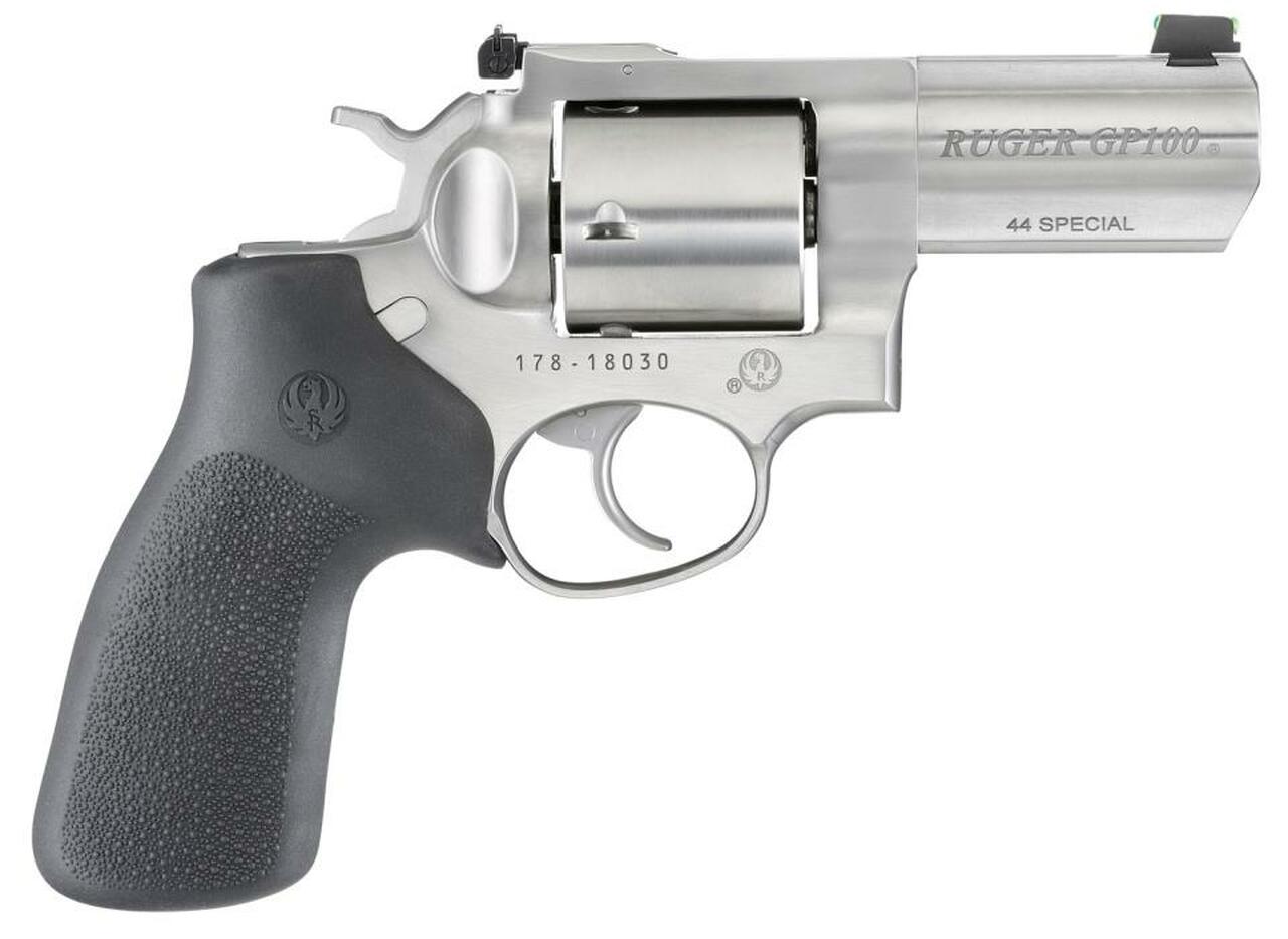 making them rugged, reliable, and dependable.Category : RevolversType : RevolverAction : Single/DoubleCaliber : 44 SpecialBarrel Length : 3″Capacity : 5Hammer Style : ExposedGrips : Black Hogue MonogripSights : Fiber Optic Front, Adjustable RearWeight : 36 ozFrame Description : Stainless
