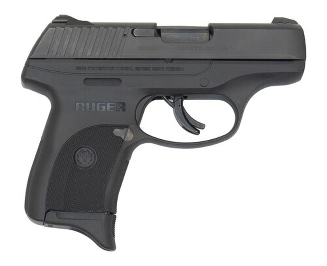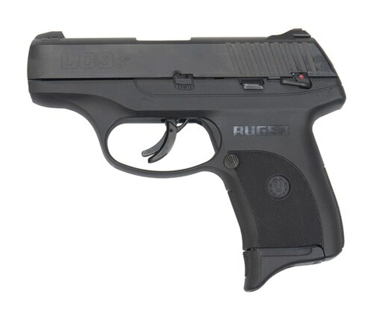 The striker-fired Ruger LC9s features a short, light, crisp trigger pull for faster shooting and improved accuracy. The LC9s provides slim, lightweight and compact personal protection with a blued steel slide, a high-performance, glass-filled nylon grip frame, aggressive checkering and an easily acquired 3-dot sight system. The LC9s fits all LC9 accessories and holsters and is just slightly larger (less than 1″ in both height and length) than the Ruger LCP. The Pro model comes without manual safety and magazine disconnect. Safety features include integrated trigger safety and a visual inspection port that allows for visual confirmation of a loaded or empty chamber.Action : Double