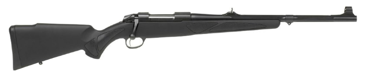 The Sako 85 Black Bear is a purpose built weapon for bear and wild boar hunters. This model features an adjustable single stage trigger, adjustable shallow ā€œVā€ Express style rear sight with white bead front sight for fast target acquisition and a barrel band for front swivel. The patented Total Control Magazine Latch (TCL) prevents accidental release of the stainless steel magazine under the heaviest recoil or harshest hunting conditions. If desired the magazine may be top-loaded without being removed from the rifle. The forged one piece bolt with three locking lugs offers fast, smooth cycling with controlled round feed and mechanical case ejection.Caliber: 30-06 6 rounds capacity (1 in chamber, 5 in magazine)