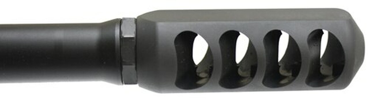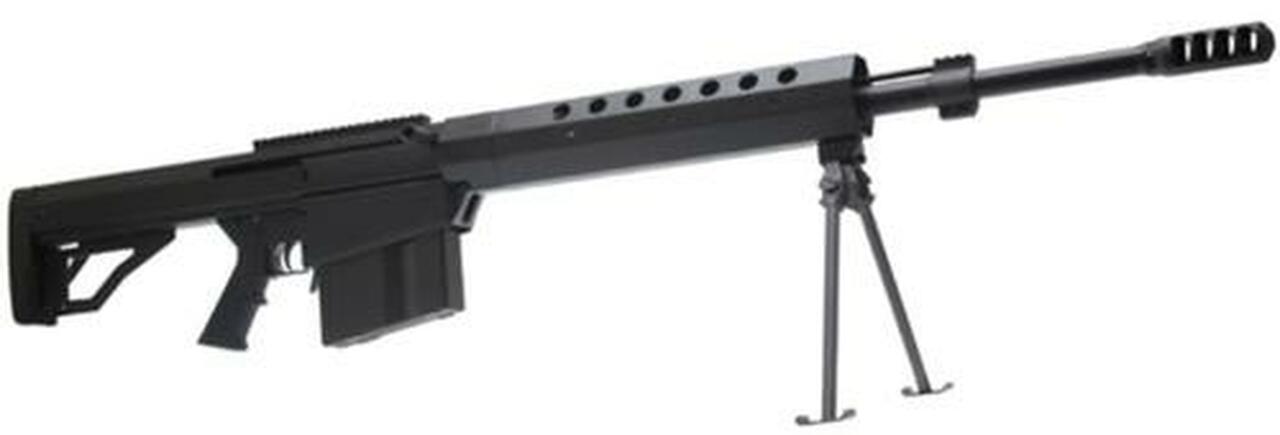 The BFG-50A is a magazine-fed, gas-operated .50 BMG rifle. It takes standard 10-round M-82 magazines. It has a 3-lug rotating bolt, dual plunger ejectors, sliding plate extractor, hydraulic recoil buffer. The bolt locks into a barrel extension which is threaded to the barrel. The bolt lug and barrel extension locking surfaces are helical. The gas system is similar to that used on a Ljungman AG-42 or MAS 49/56. As with our BFG-50 single-shot rifle, all our barrels are chambered with our own reamer design which allows surplus ammunition to be fired but gives far greater accuracy than can be achieved with barrels using a machine gun chamber. Barrel length: 26.0″, overall length: 52.5″. Rifle weighs 25 lbs unloaded. The BFG-50A uses a highly efficient 8-port “Shark Brake” muzzle brake. Barrel/barrel extension and handguard are removable to allow different barrel and handguard lengths and configurations.