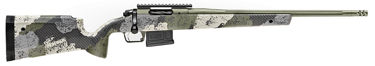 Springfield Model 2020 Waypoint 6MM Creedmoor, 20″ Fluted Stainless Barrel, SA Radial Brake, Green, Mil-Spec Green Cerakote, Evergreen Camo Carbon Fiber Stock M-LOK, TriggerTech Adj Trigger, AICS 5rd Mag