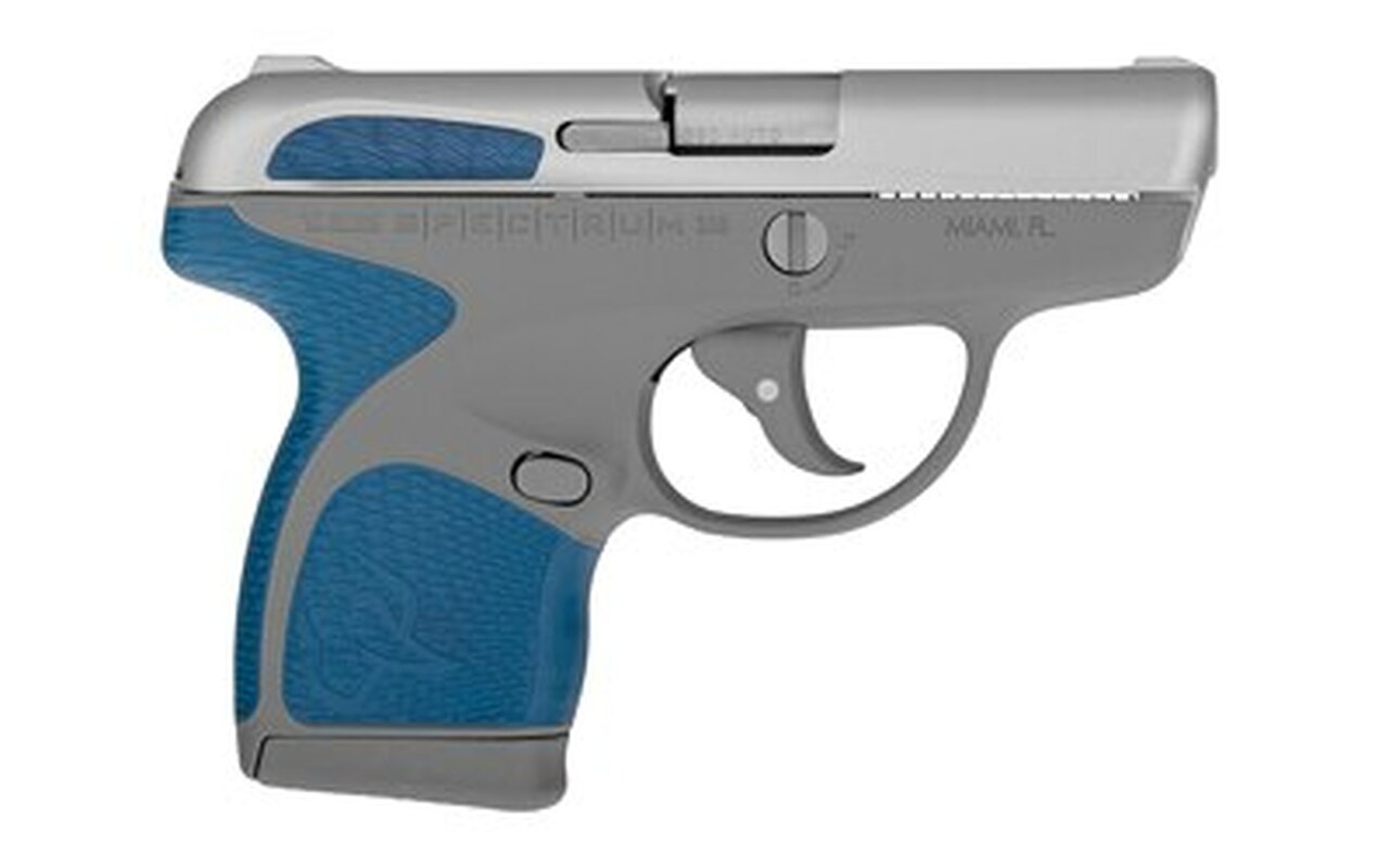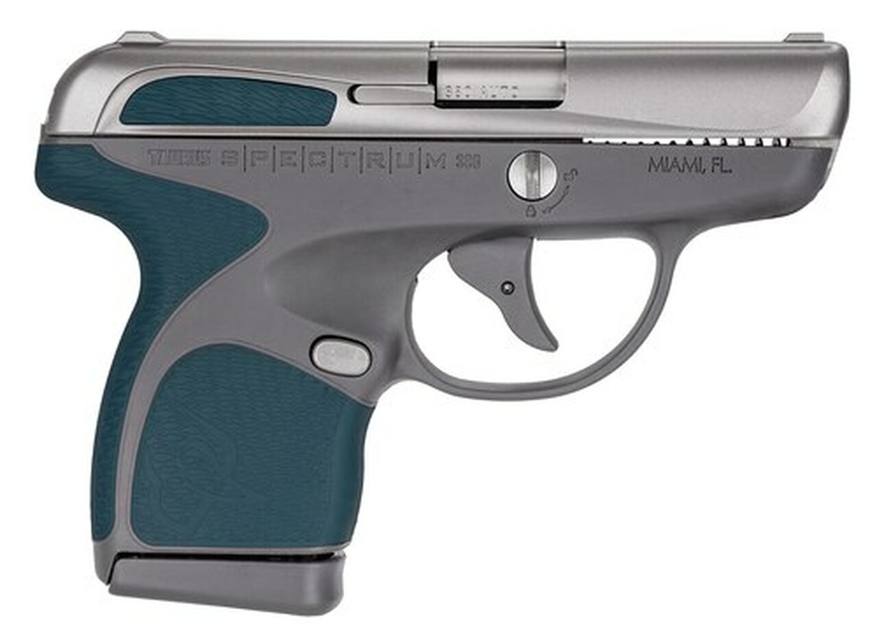 Taurus, Spectrum, Semi-automatic Striker Fired Pistol, 380ACP, 2.8″ Barrel, Gray Polyer Frame, Indiglo Blue Overmold, Stainless Slide, 1-6Rd & 1-7Rd, 2 Magazines
