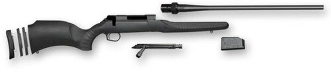 Bolt action platform with interchangeable barrels, stocks and components. Allows you to shoot multiple calibers in the same bolt-action rifle with a quick change of components. Featuring the Locking Optimized Components system (LOC). Component groups labeled Series A, B, C or D for easy matching; with color-coded packaging. Base gun features include black composite stock with removable spacers and competition-high cheekpiece, 3-lug fluted bolt, 3-round detachable box magazine and textured Armorsoft gripping. Adjustable trigger. Matte blued finish on barrels with 5R rifling. Factory installed Weaver-style bases included.