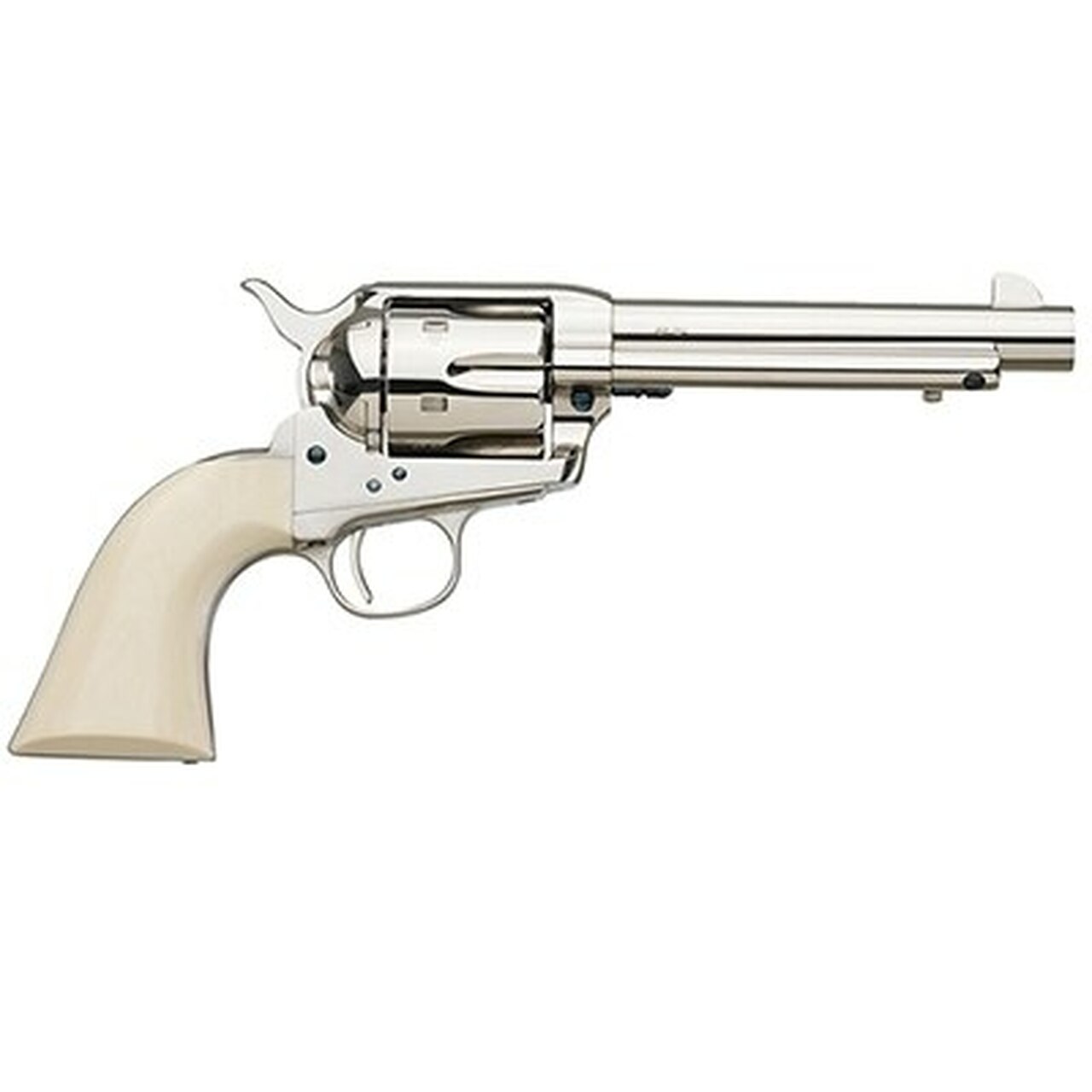 The single-action Army was most widely produced with a color case-hardened frame and blued barrel. Meanwhile, a nickel-plated version was issued to Indian scouts. And a bright charcoal blue finish was available from the factory. But with years of use, the old 6-guns took on a well-handled soft gray patina. All of these classic finishes are available in the 1873 Cattleman.Finish: Polished nickel