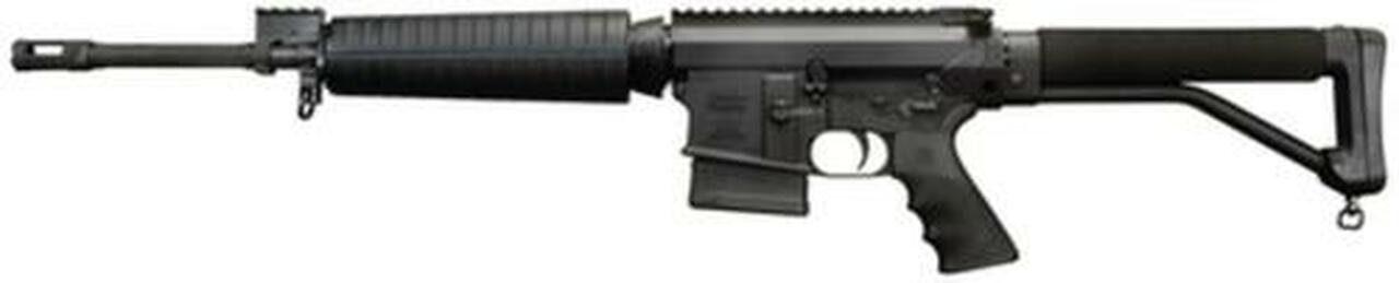 Semi-automatic, gas impingement system. Ships with one 10 round Magpul PMag Magazine. Manual lever safety with indicator markings on both sides of receiver. Flat top upper receiver. Forged 7075 T6 aircraft aluminum receiver with integral trigger guard and hardcoat black anodized finish. Medium profile chrome lined barrel with welded compliant compensator. Barrel material: 4150M Chrome Moly Vanadium 11595E steel. 1 turn in 10 inches – right hand twist – 6 lands and grooves. Skeleton stock with sling swivel. Midlength tapered shielded handguards / Hogue Overmolded Grip. No sights. Picatinny Rail Gas Block. Comes in hard plastic gun case with black web sling, QD sling swivel and operators manual.Barrel Length : 16.5Caliber : .308 Win.Capacity : 10Finish : BlackItem Description : WWE SRC 308 WIN 16.5 10 MA